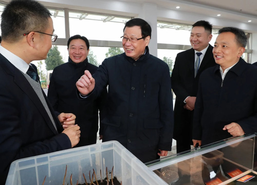 On November 24, Ying Yong, Secretary of the Hubei Provincial Party Committee, came to HEC Yidu Base to conduct research on the implementation of the spirit of the Fifth Plenary Session of the 19th CPC Central Committee, the spirit of General Secretary Xi Jinping's important speech at the symposium on comprehensively promoting the development of the Yangtze River Economic Belt, and the work of poverty alleviation.