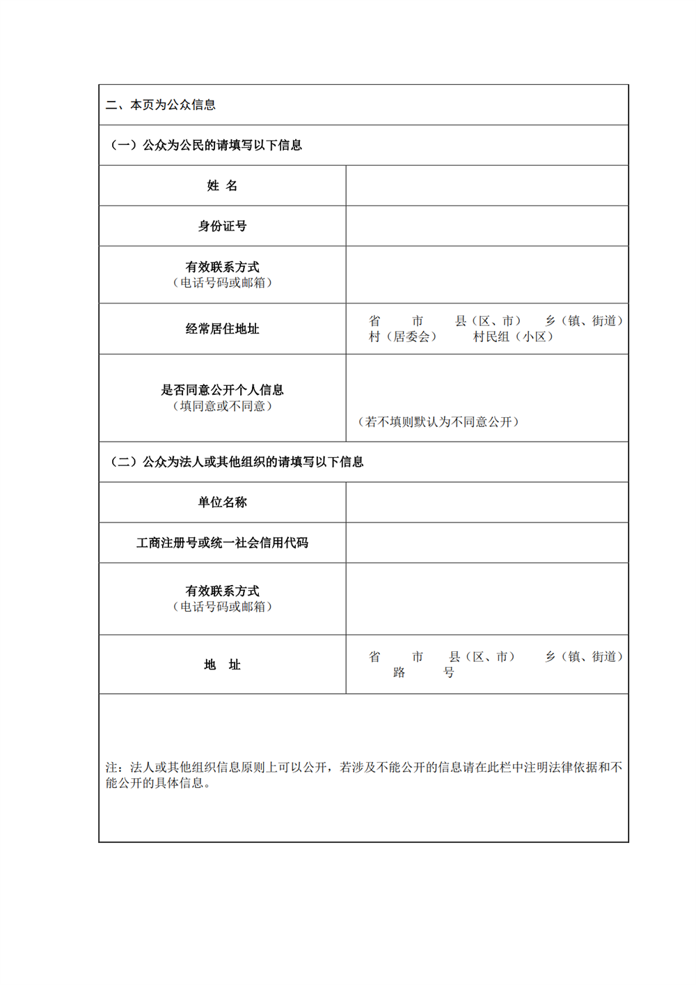 Public Opinion Form for Environmental Impact Assessment of Construction Projects