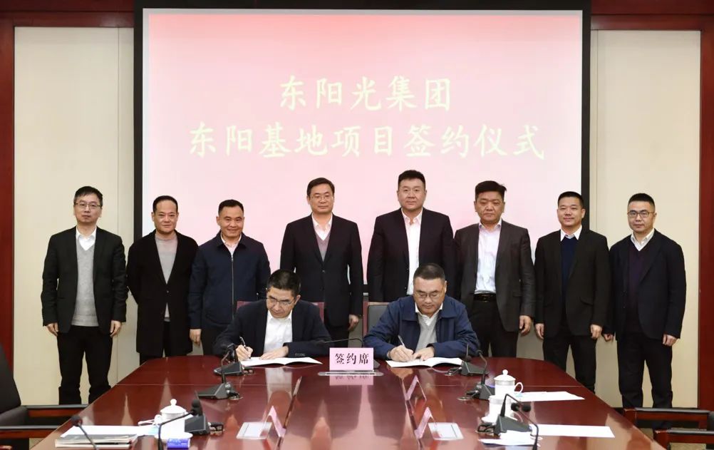 4月1日,東陽光集團(tuán)與東陽市政府在東陽市簽訂戰(zhàn)略合作協(xié)議。雙方就進(jìn)一步擴(kuò)大投資,高質(zhì)量、高效益建設(shè)東陽基地達(dá)成合作,全面提升戰(zhàn)略合作高度。東陽市市委書記樓瑯堅(jiān)、市長黃勝可及各有關(guān)單位負(fù)責(zé)人,東陽光集團(tuán)董事長張?jiān)?、董事?huì)輪值主席盧宇新、董事朱英偉等出席簽約儀式。