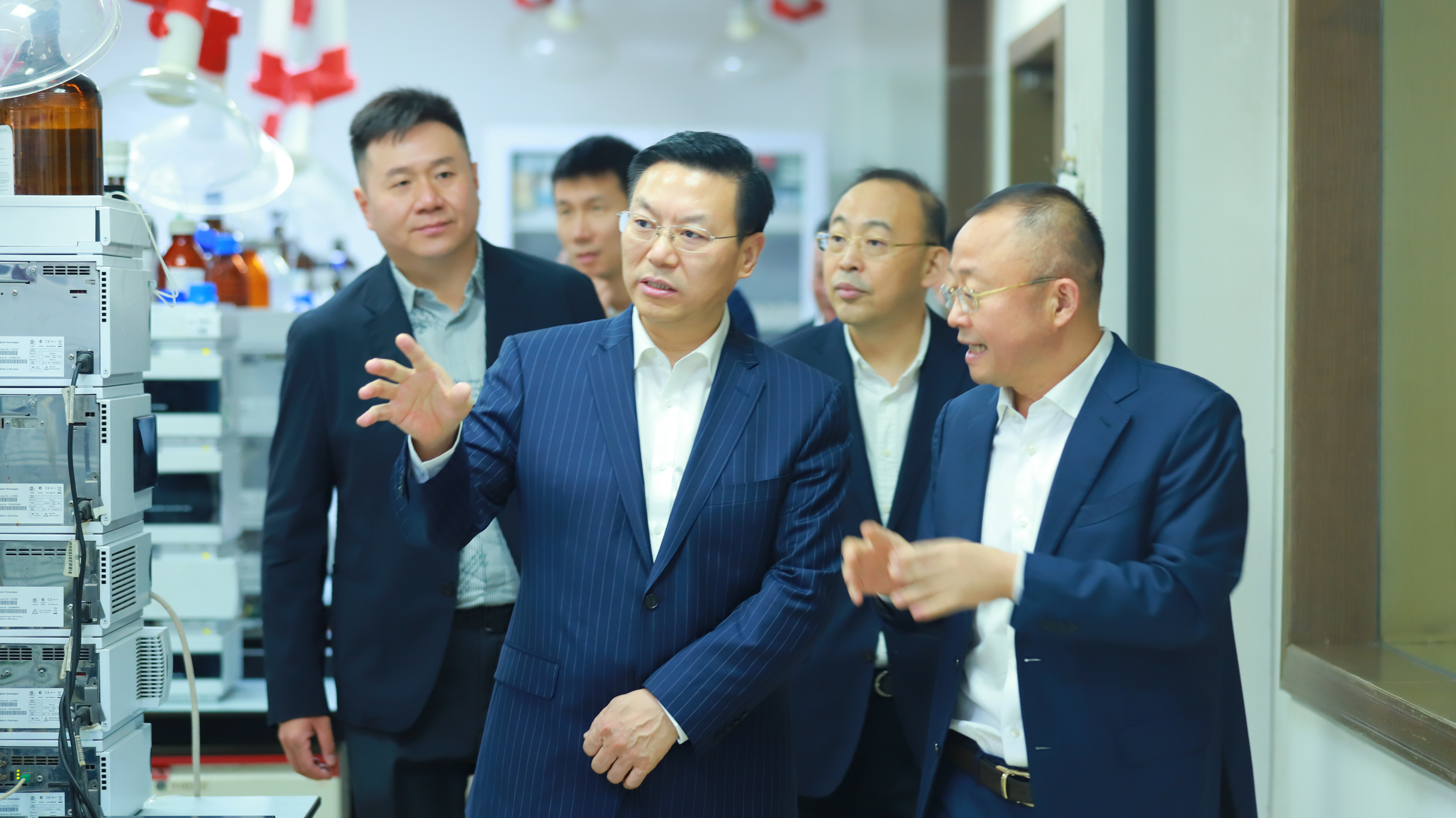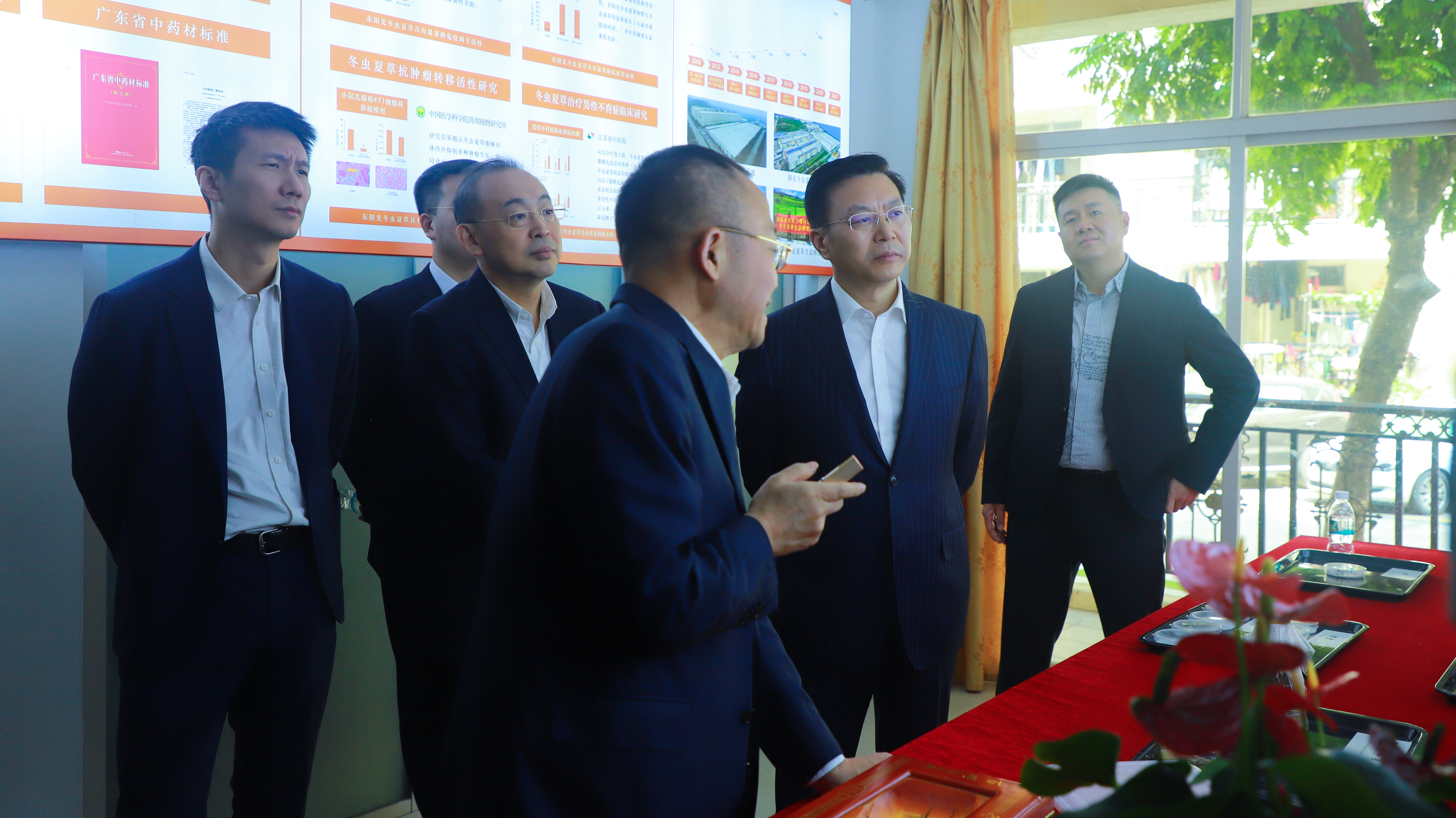 2023年2月20日上午,光大銀行曲亮副行長(zhǎng)一行考察東陽(yáng)光集團(tuán),集團(tuán)董事長(zhǎng)張?jiān)洠瘓F(tuán)董事、總經(jīng)理唐新發(fā),集團(tuán)董事、研究總院院長(zhǎng)鄧新華等陪同并參加參觀、座談。曲行長(zhǎng)一行參觀了東陽(yáng)光兩個(gè)國(guó)家級(jí)重點(diǎn)實(shí)驗(yàn)室:抗感染新藥研發(fā)國(guó)家重點(diǎn)實(shí)驗(yàn)室和冬蟲(chóng)夏草繁育與產(chǎn)品研發(fā)重點(diǎn)研究室。