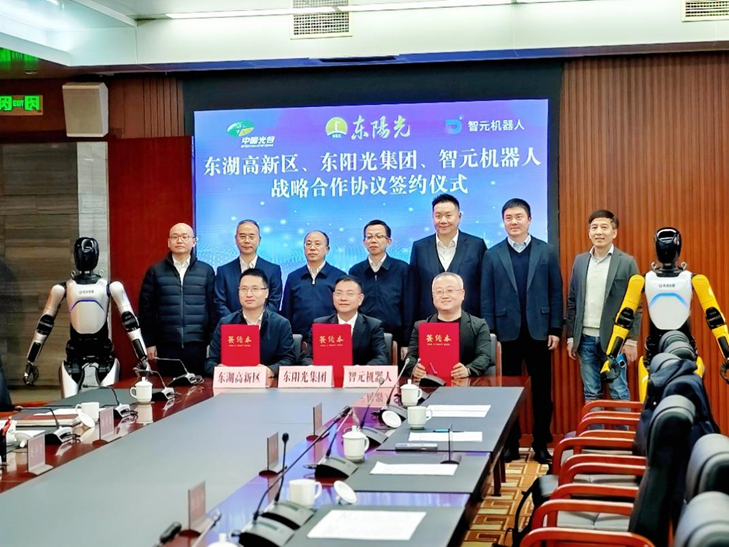 東陽(yáng)光、智元機(jī)器人與武漢東湖新技術(shù)開(kāi)發(fā)區(qū)管理委員會(huì)共同簽訂了三方戰(zhàn)略合作框架協(xié)議。根據(jù)協(xié)議,三方將攜手致力于在東湖高新區(qū)打造全國(guó)最大最先進(jìn)、華中首家人形機(jī)器人創(chuàng)新中心。該創(chuàng)新中心將建設(shè)成為一個(gè)公共性、開(kāi)放性、共享性的人形機(jī)器人服務(wù)平臺(tái)。東陽(yáng)光與智元機(jī)器人、北武院、靈初智能于今年2月在武漢市攜手設(shè)立湖北光谷東智具身智能技術(shù)有限公司(下稱(chēng)“光谷東智”),并將在光谷建設(shè)人形機(jī)器人生產(chǎn)線、發(fā)布光谷東智全系列機(jī)器人產(chǎn)品和具身智能模型,三方共同支持光谷東智公司發(fā)展。