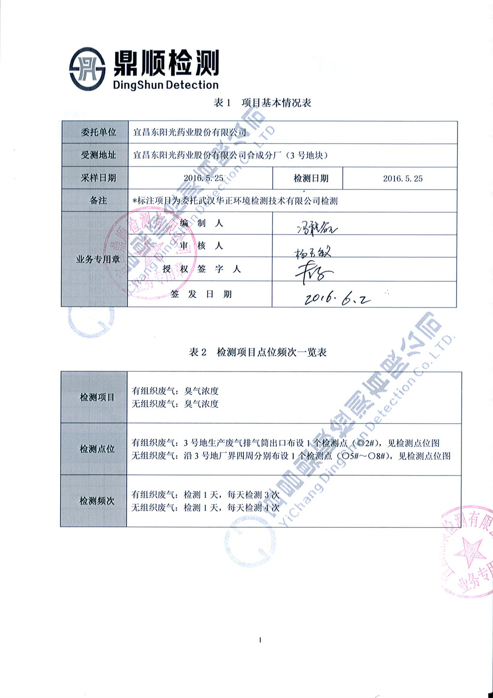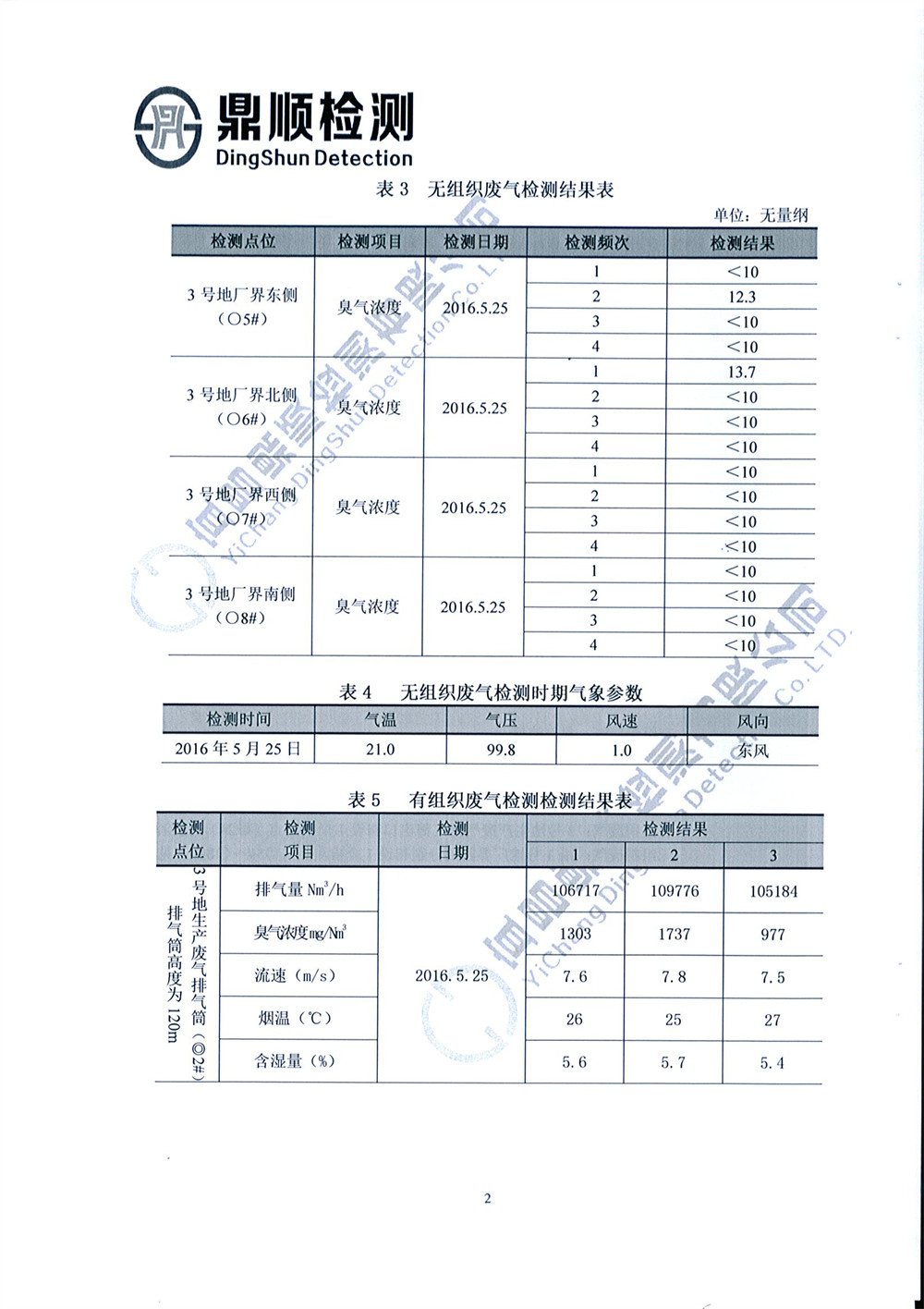 The company entrusted Yichang Dingshun Testing Co., Ltd. to carry out environmental monitoring on the waste water and waste gas of No. 2 and No. 3 sites. According to the monitoring results, both waste water and waste gas of the company were discharged up to the standard. The relevant monitoring report is as follows.