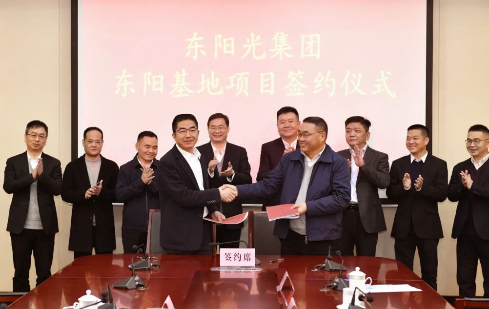 4月1日,東陽光集團(tuán)與東陽市政府在東陽市簽訂戰(zhàn)略合作協(xié)議。雙方就進(jìn)一步擴(kuò)大投資,高質(zhì)量、高效益建設(shè)東陽基地達(dá)成合作,全面提升戰(zhàn)略合作高度。東陽市市委書記樓瑯堅(jiān)、市長黃勝可及各有關(guān)單位負(fù)責(zé)人,東陽光集團(tuán)董事長張?jiān)?、董事?huì)輪值主席盧宇新、董事朱英偉等出席簽約儀式。